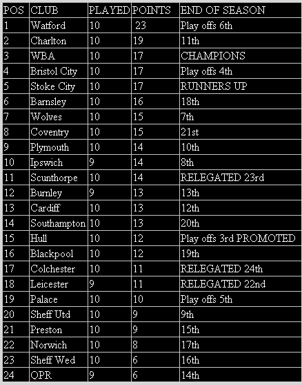 I thought it would be instructive to have a look at the table at the same stage last season to see if it revealed anything useful.