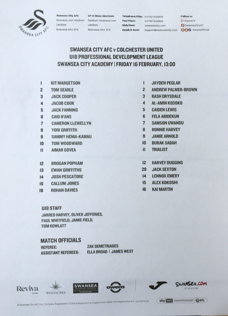 A pleasing return to form and goals for our U18s this afternoon in a 5-1 at Landore against Colchester United.