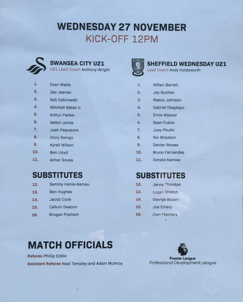 8 minutes before half-time, Wednesday’s Shipston passed a loose ball that Govea snapped up inside the Swans half. Govea took the ball forward quickly, releasing Ben Lloyd in a dangerous advanced position. Lloyd’s shot was close to the keeper but its power got it through Barrett’s legs to extend Swansea’s lead. In the remaining minutes to the interval, both sides continued to exchange presentable opportunities in what had been a fairly even affair played at high tempo.