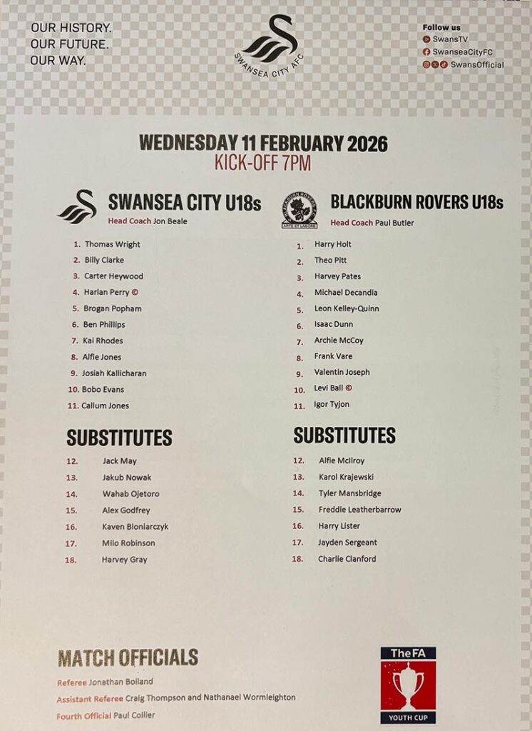 As expected, coach Jon Beale made a number of changes to the squad that played at the weekend against Cardiff City. There were 6 changes in total and Billy Clarke reverted to right back from right wing. We were missing promising U16 midfielder Bobby Lewis, called out to international duty. Blackburn’s eleven featured ten of the starters from the club’s 8-1 victory in the last round at Coventry City. This included centre forward Valentin Joseph, who had already scored 15 goals to date this season, including 4 in that Coventry tie.