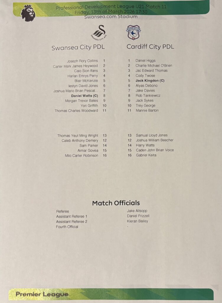 Cardiff played mostly the same team that had lost to our U-21s at Leckwith a fortnight ago.